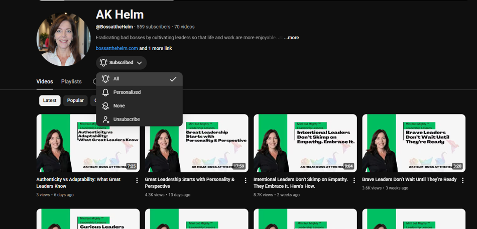 Every week, we publish a brief but impactful lesson to help you level up through personal and professional development. And, it's free to you. Check it out on YouTube @BossattheHelm